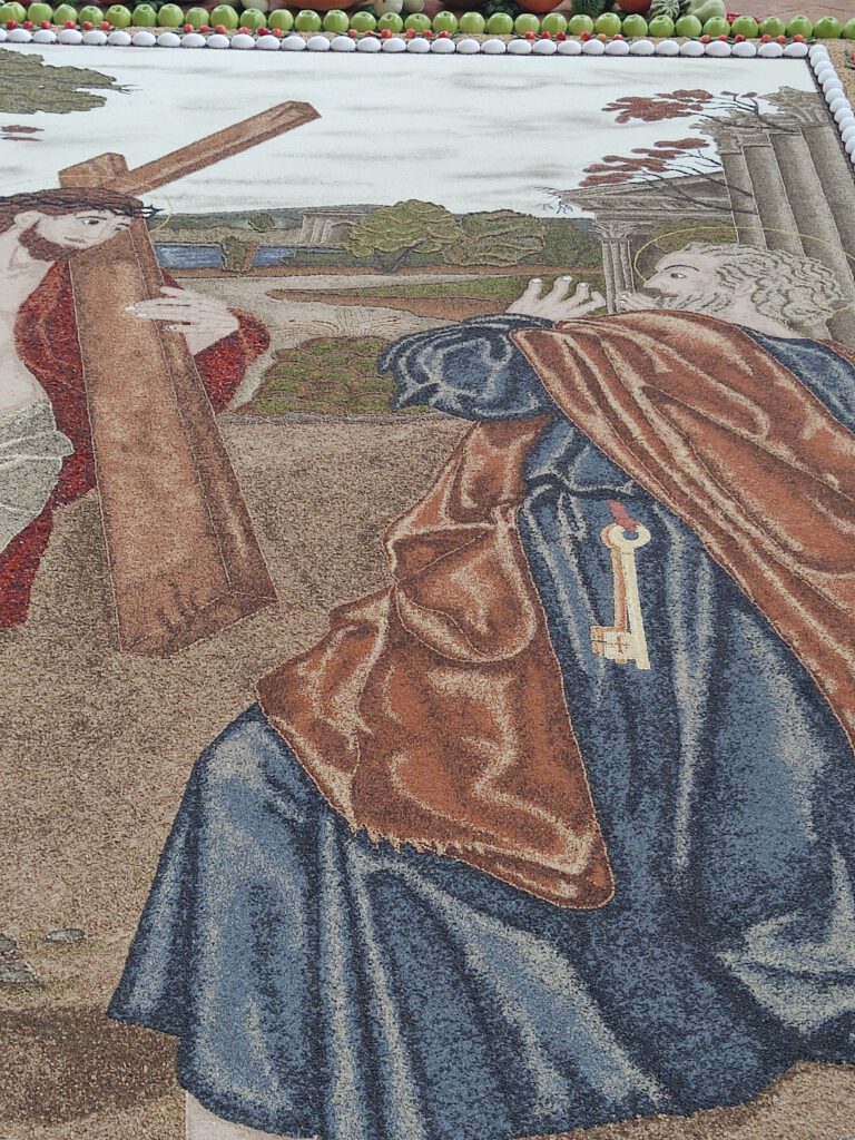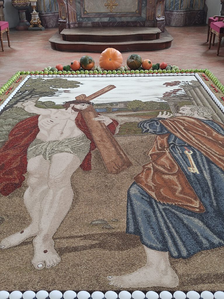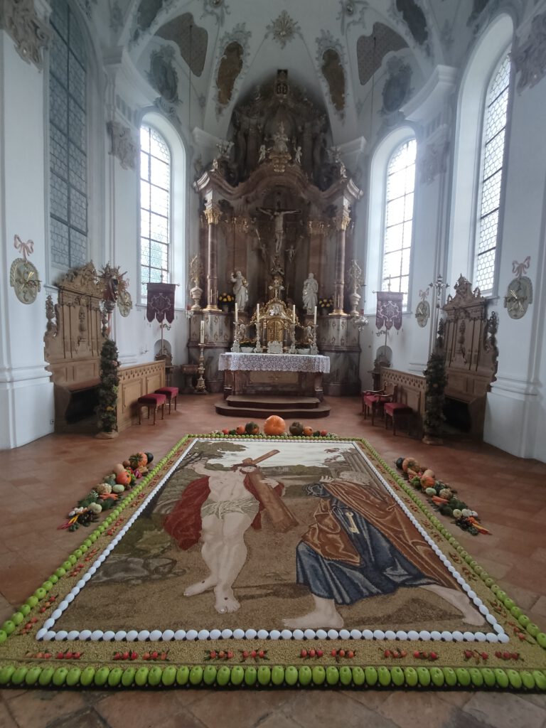 Erntedankteppich „Herr, wohin gehst Du?“ in der St. Oswald Pfarrkirche in Otterswang nahe Bad Schussenried (Foto I. Veil-Köberle)